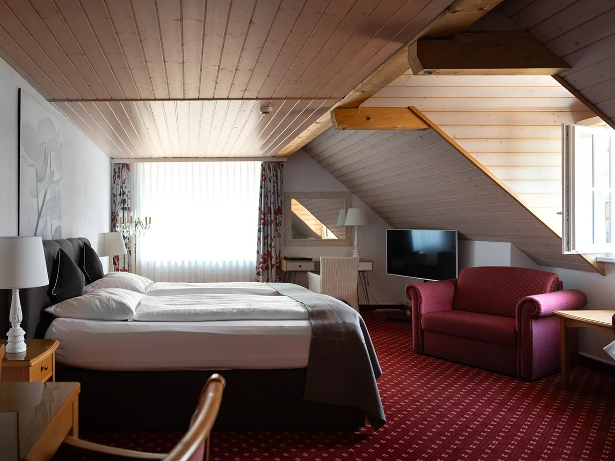 For guests with an appreciation for spaciousness and comfort, the Junior Suite at Hotel Schlössli Ipsach offers a stylish temporary home.